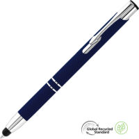 Electra Classic GRS Recycled Soft Feel Metal Ballpoint Pen with Stylus - Dark Blue